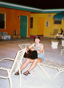 Lauren assumed this position almost every day at sunset. She was the sun goddess during daylight, and didn't care what got played on the boom box, but as soon as the sun went down, she sat up in the chair (or left the deck rail) and the box stayed on her lap for the rest of the evening! At least she has the same taste in music as I do!