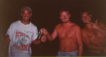 About the time that Kim, Pat, and I were taking our 1:00 am swim, a few of the guys had gone to the pier to do some moonlight fishing. This was their big catch! (Don't they look a little too drunk to fish?) Oh, well, at least they had fun. And you should've seen the one that got away!