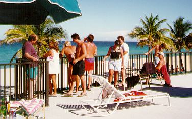This is what we did for most of the day every day. Hanging out on the deck, overlooking the broadwalk and the ocean, smelling the food from the Jamaican restaurant below, and just relaxing in the sun were our number one priorities. Of course, there was the occasional trek from the deck to the ocean!