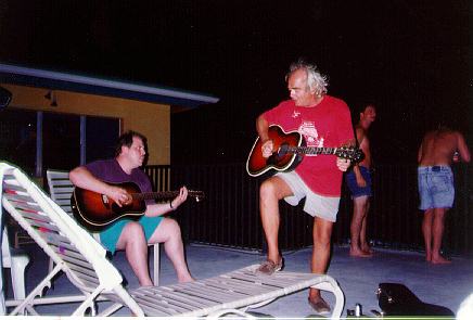 Of course we had tunes, and some of the best music was not on CD, but live on the deck courtesy of Dad and Timmy! This night was too fun. Deron even improvised some lyrics and we all put in our two cents worth of backup vocals. It got even better when Dad traded his guitar for a harmonica, but that picture just didn't come out as well as this one!